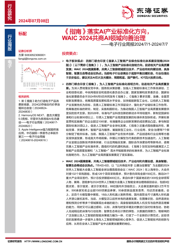 【东海证券】【20240708】《指南》落实AI产业标准化方向,WAIC 2024共商AI领域向善治理-14页