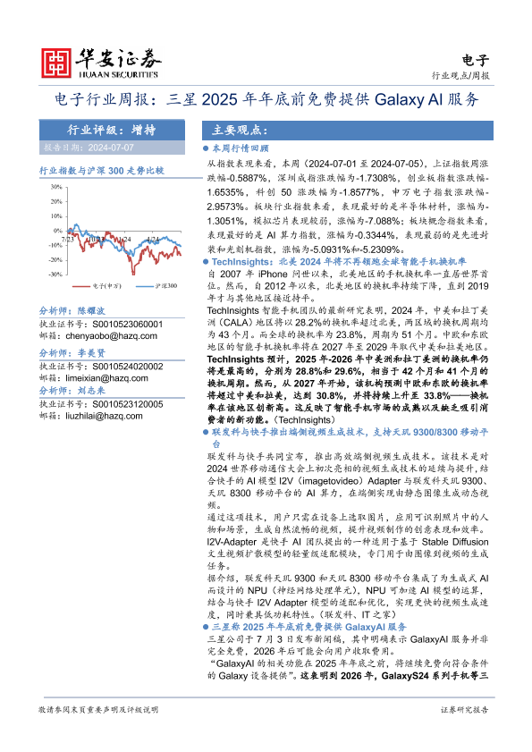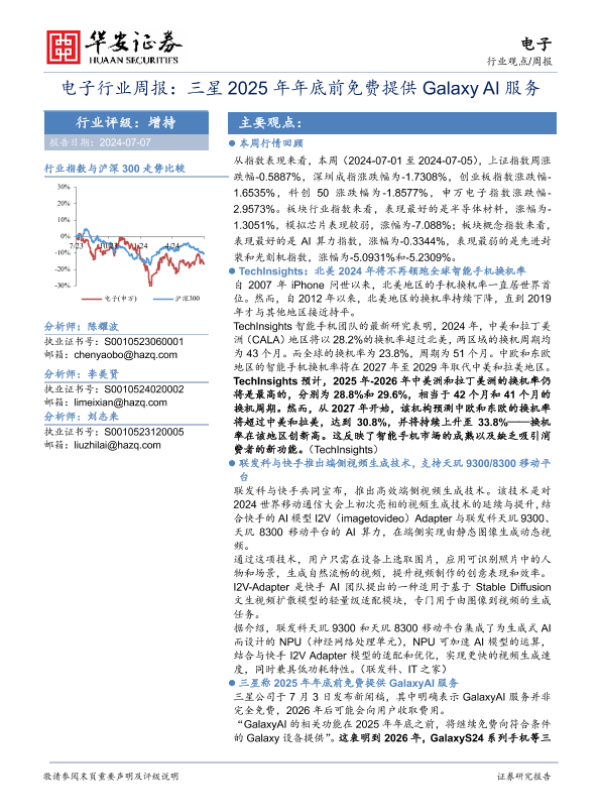 【华安证券】【20240707】20240707-华安证券-电子行业周报:三星2025年年底前免费提供Galaxy AI服务-20页