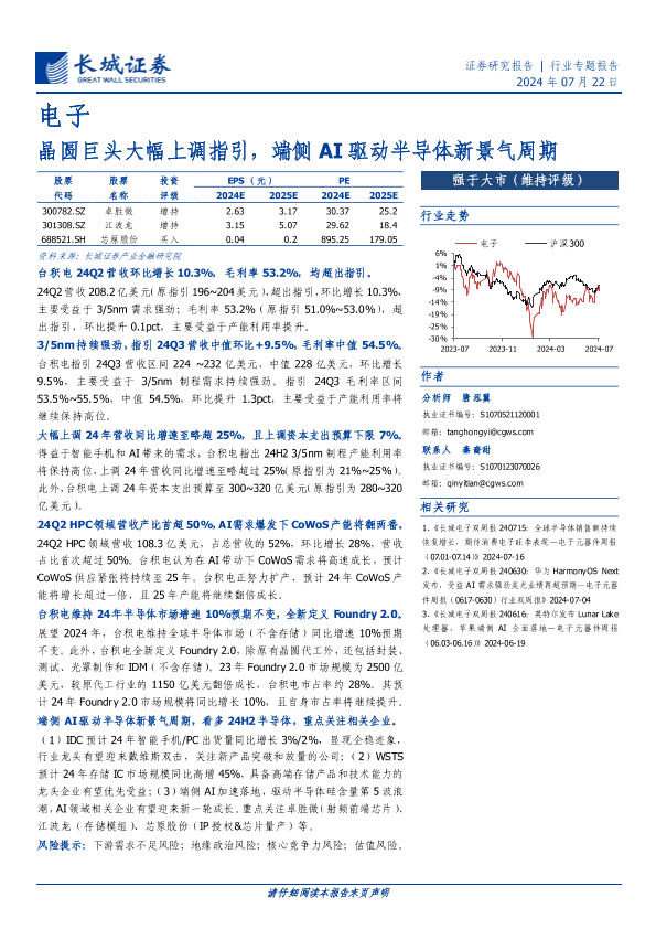 【长城证券】【20240722】晶圆巨头大幅上调指引,端侧AI驱动半导体新景气周期-13页