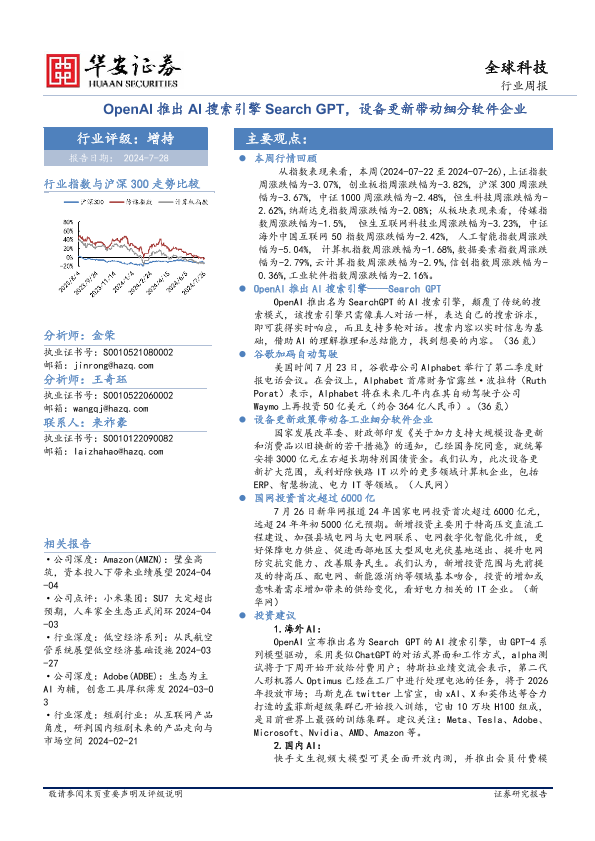 【华安证券】【20240728】全球科技行业周报:OpenAI推出AI搜索引擎Search GPT,设备更新带动细分软件企业-20页