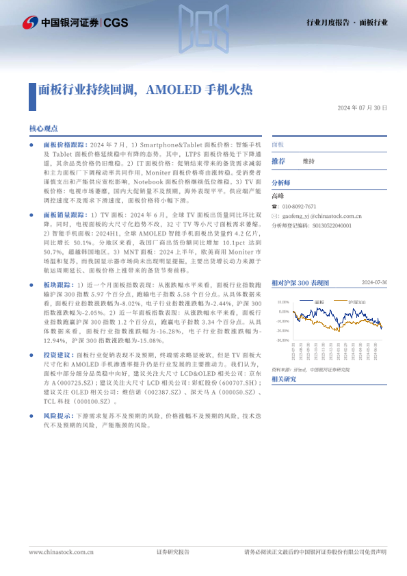 【银河证券】【20240730】面板行业行业月度报告:面板行业持续回调,AMOLED手机火热-11页