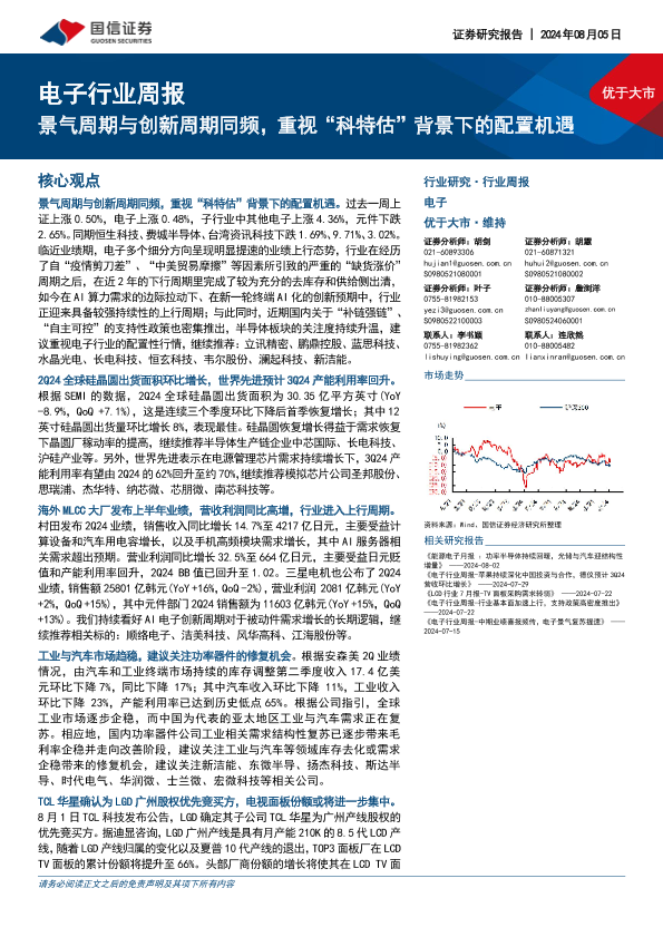 【国信证券】【20240805】20240805-国信证券-电子行业周报:景气周期与创新周期同频,重视“科特估”背景下的配置机遇-11页