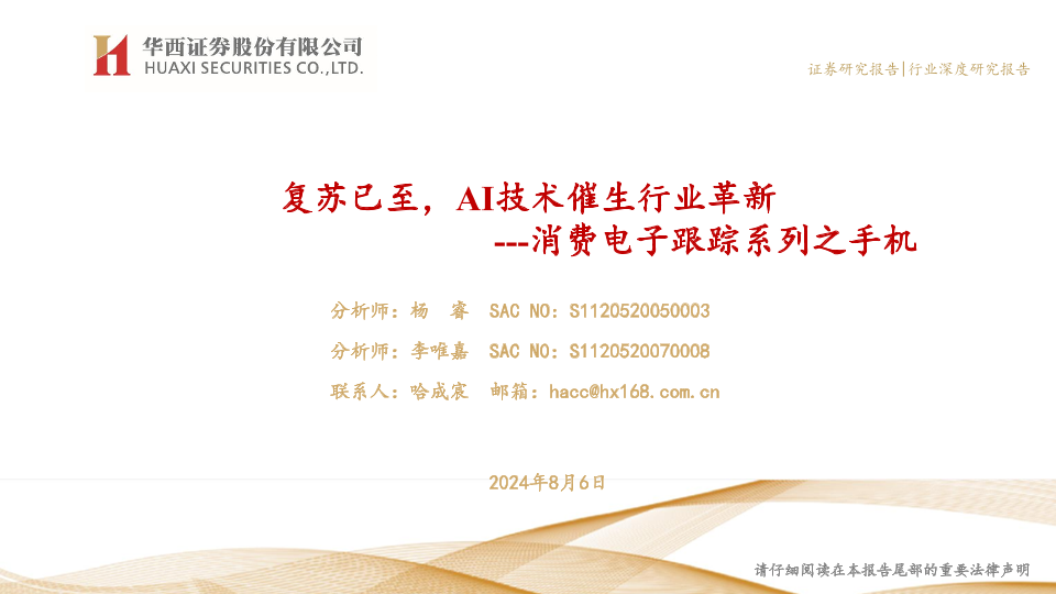 AI技术 华西证券 手机复苏 消费电子 行业革新