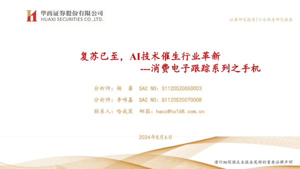 【华西证券】【20240806】消费电子跟踪系列之手机:复苏已至,AI技术催生行业革新-31页