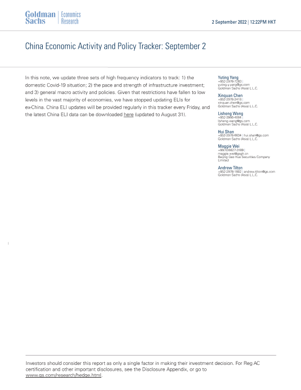 【Goldman Sachs】【20220902】China Economic Activity and Policy Tracker September 2-11页