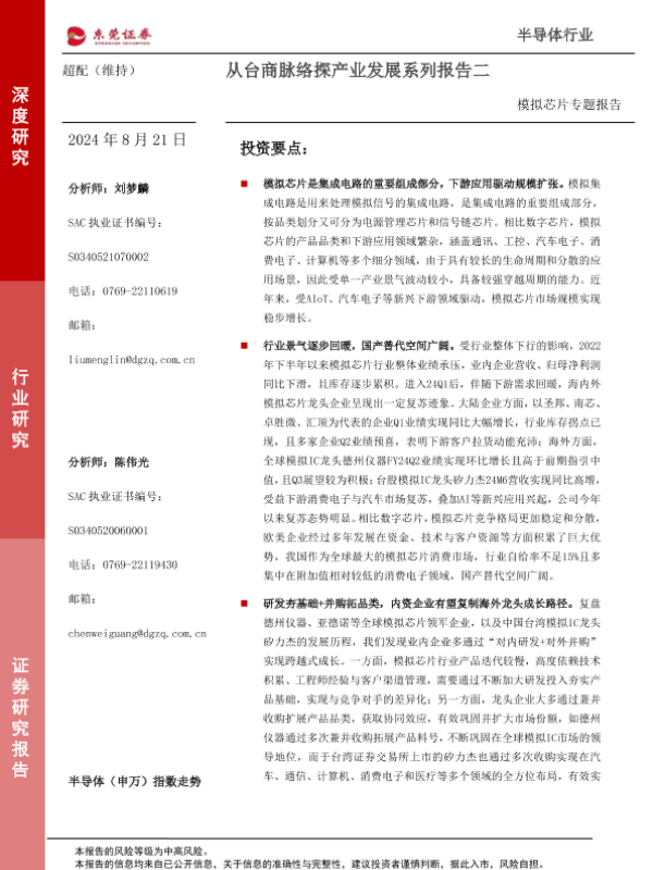 【东莞证券】【20240821】20240821-东莞证券-模拟芯片专题报告:从台商脉络探产业发展系列报告二-52页