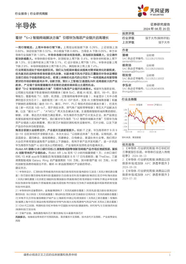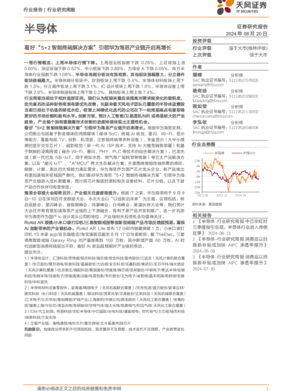 【天风证券】【20240820】20240820-天风证券-半导体行业研究周报:看好“5+2智能终端解决方案”引领华为海思产业链开启高增长-35页
