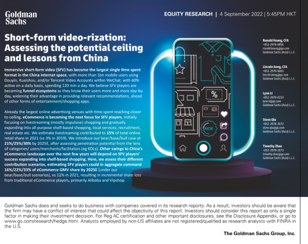 【Goldman Sachs】【20220904】Short-form video-rization Assessing the potential ceiling and lessons from China-82页