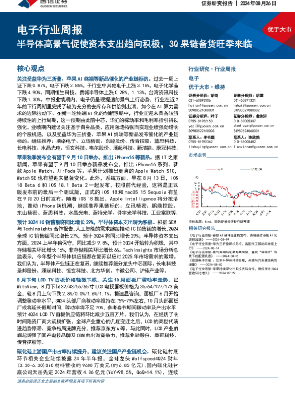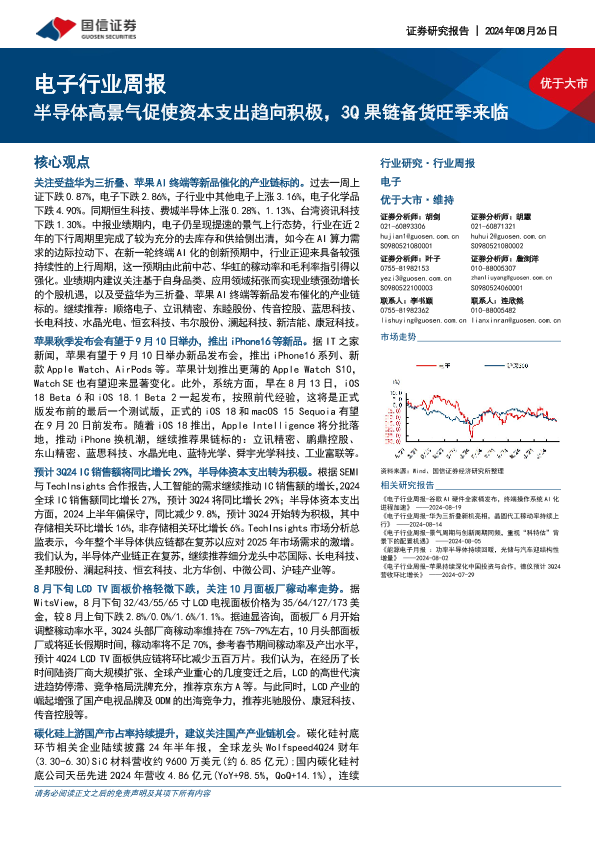 【国信证券】【20240826】电子行业周报:半导体高景气促使资本支出趋向积极,3Q果链备货旺季来临-11页