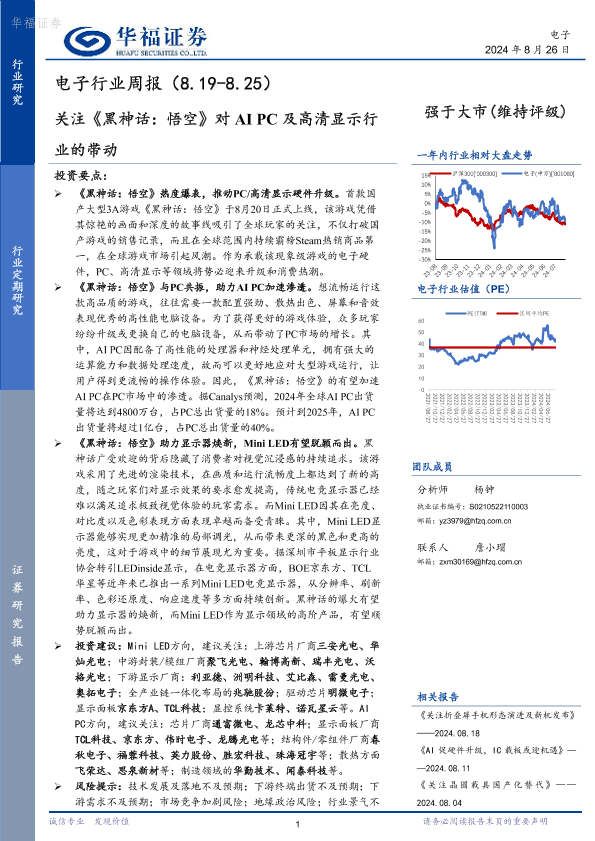 【华福证券】【20240826】20240826-华福证券-电子行业周报:关注《黑神话:悟空》对AI PC及高清显示行业的带动-18页