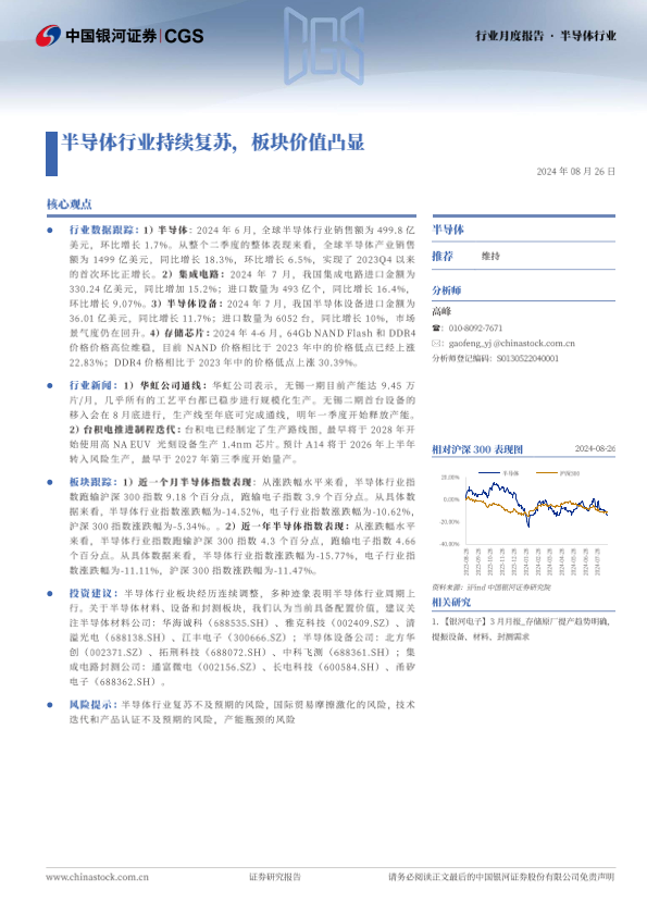 【银河证券】【20240826】20240826-中国银河-半导体行业行业月度报告:半导体行业持续复苏,板块价值凸显-12页