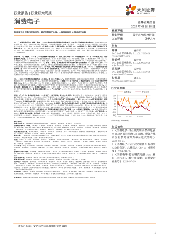 【天风证券】【20240828】消费电子行业研究周报:智能硬件及折叠机密集发布,看好折叠屏产业链、大模型商用及AI硬件多元创新-46页