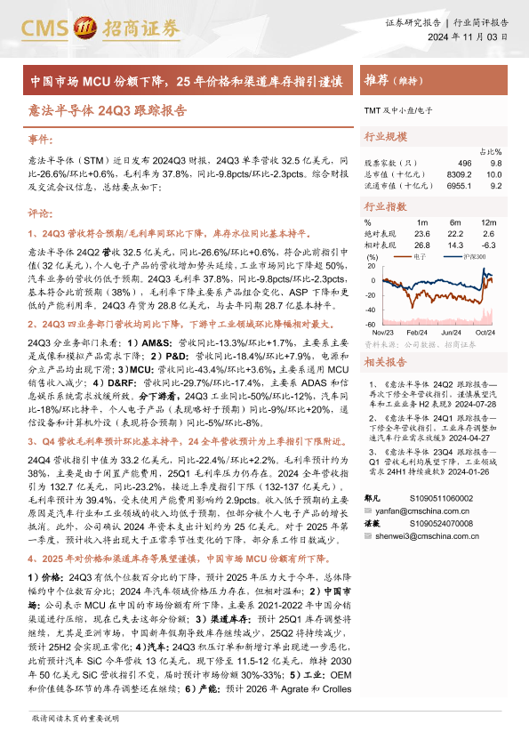 【海通证券】【20241103】20241103-招商证券-意法半导体24Q3跟踪报告:中国市场MCU份额下降,25年价格和渠道库存指引谨慎-11页