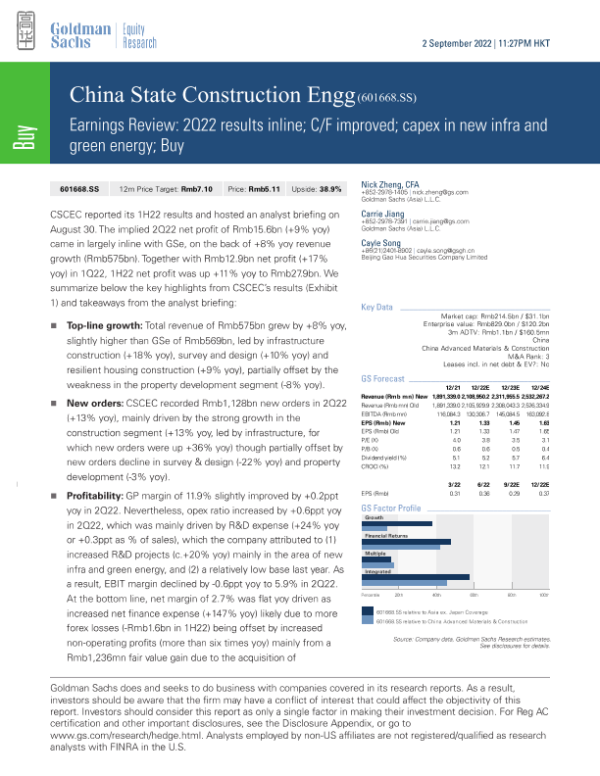 【Goldman Sachs】【20220902】iew_ 2Q22 results inline; C_F improved; capex in new infra and green energy-8页