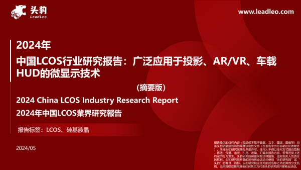 【头豹研究院】【202405】2024年中国LCOS行业研究报告:广泛应用于投影、AR/VR、车载HUD的微显示技术-18页