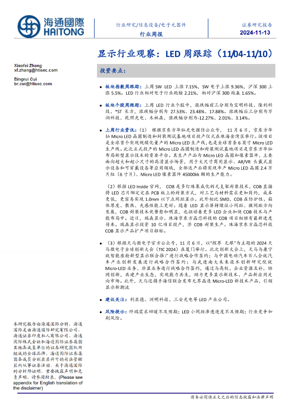【海通国际】【20241113】显示行业观察:LED周跟踪-10页
