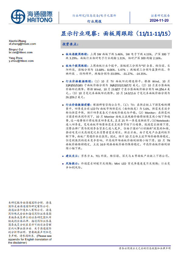 【海通国际】【20241120】显示行业观察:面板周跟踪-11页