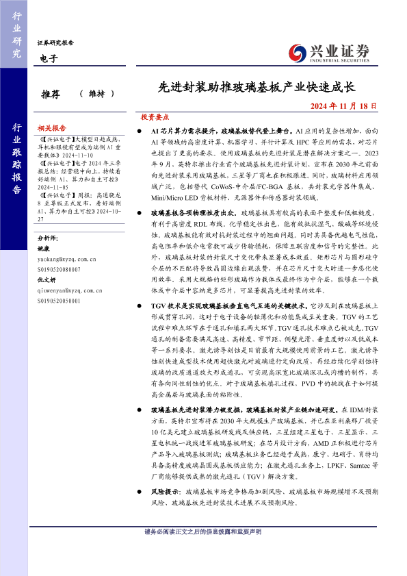 【兴业证券】【20241118】先进封装助推玻璃基板产业快速成长-11页