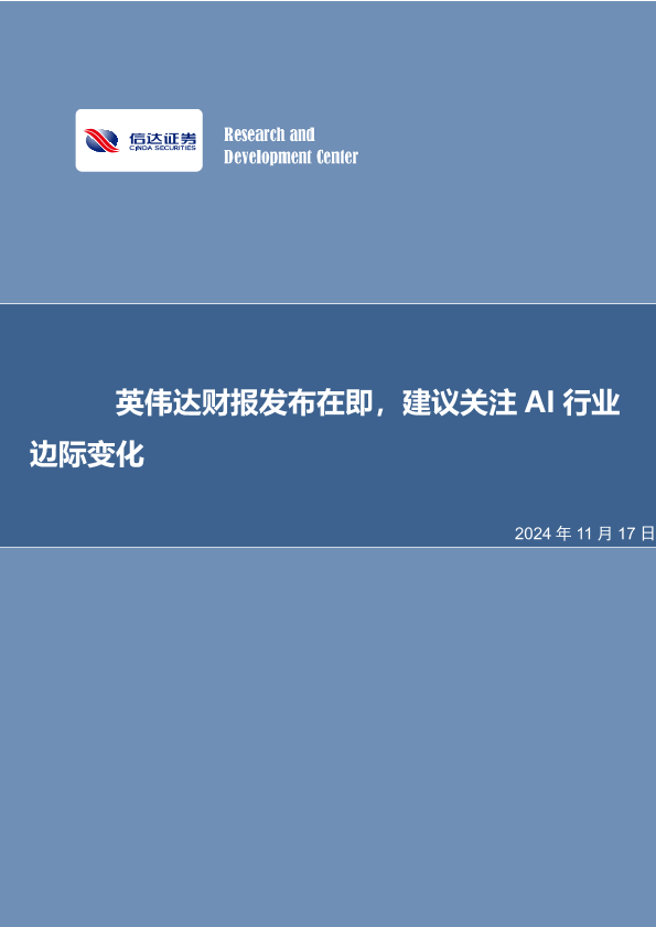【信达证券】【20241117】英伟达财报发布在即,建议关注AI行业边际变化-10页