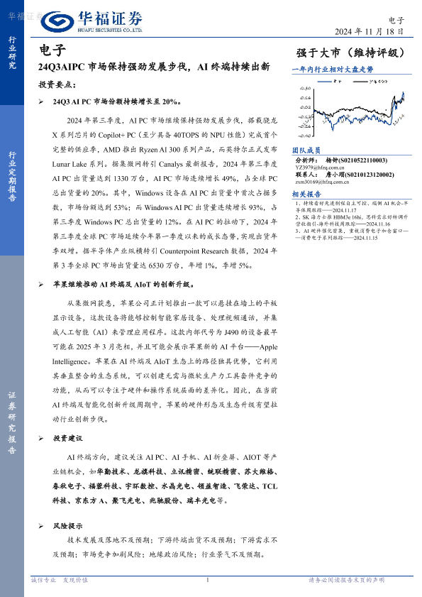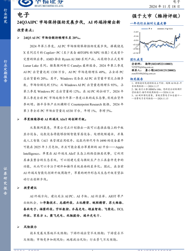 【华福证券】【20241118】24Q3AIPC市场保持强劲发展步伐,AI终端持续出新-22页