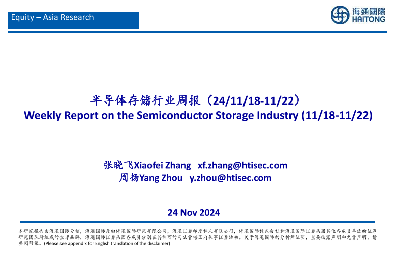 【海通国际】【20241124】半导体存储行业周报-22页