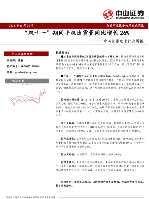【中山证券】【20241121】20241121-中山证券-电子行业周报:“双十一”期间手机出货量同比增长26%-10页
