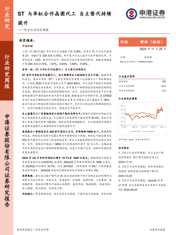 【申港证券】【20241125】20241125-申港证券-电子行业研究周报:ST与华虹合作晶圆代工,自主替代持续提升-10页
