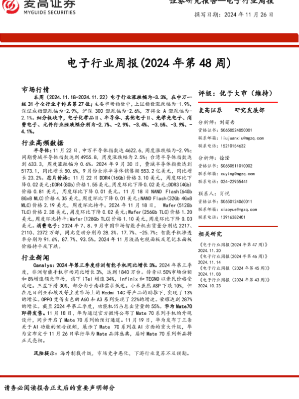 【麦高证券】【20241126】电子行业周报(2024年第48周)-13页