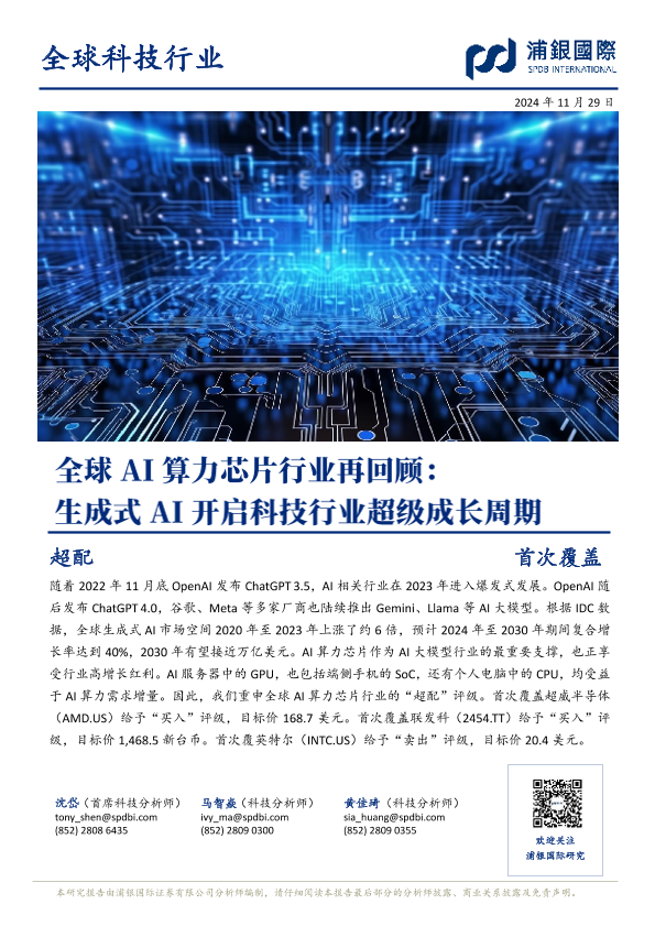 【浦银国际】【20241129】全球AI算力芯片行业再回顾:生成式AI开启科技行业超级成长周期-100页