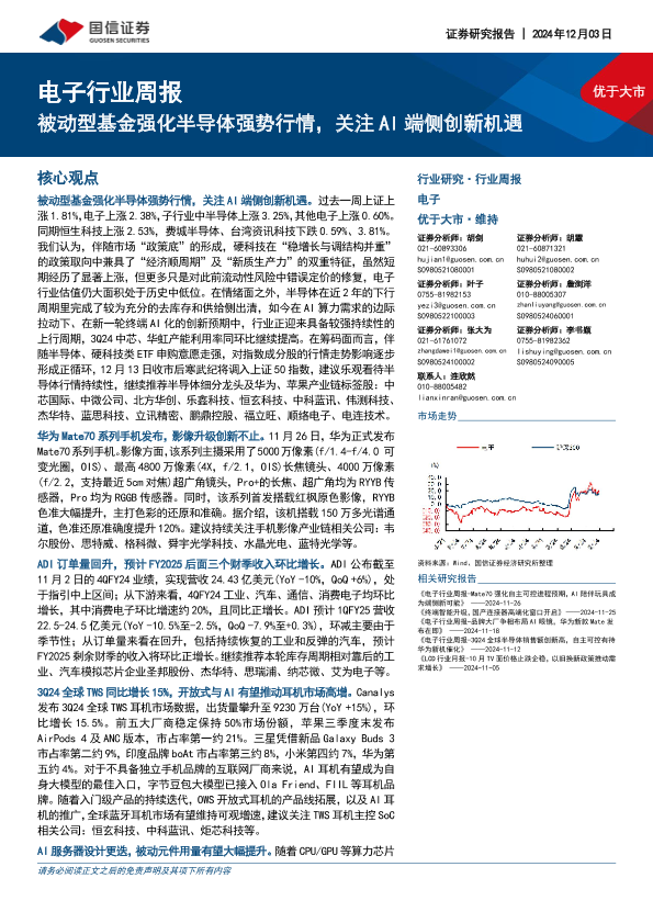 【国信证券】【20241203】20241203-国信证券-电子行业周报:被动型基金强化半导体强势行情,关注AI端侧创新机遇-10页
