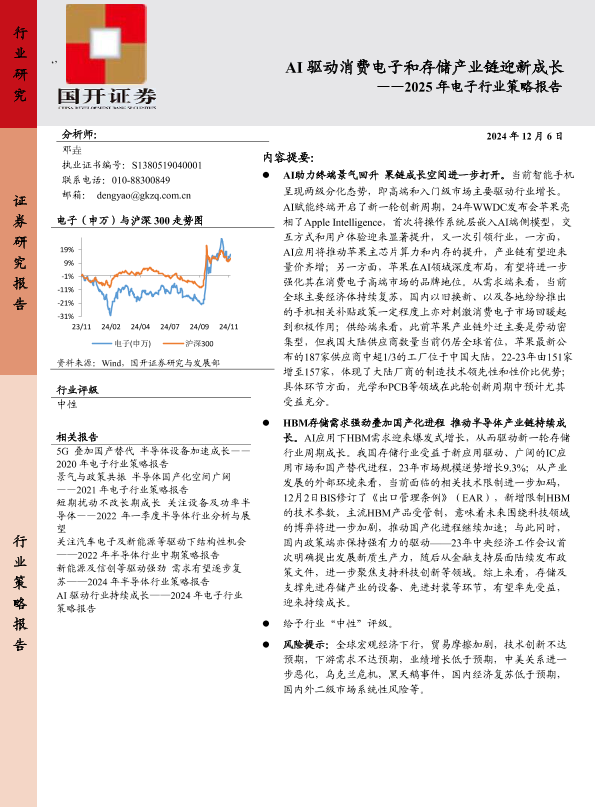 【国开证券】【20241206】AI驱动消费电子和存储产业链迎新成长——2025年电子行业策略报告-21页