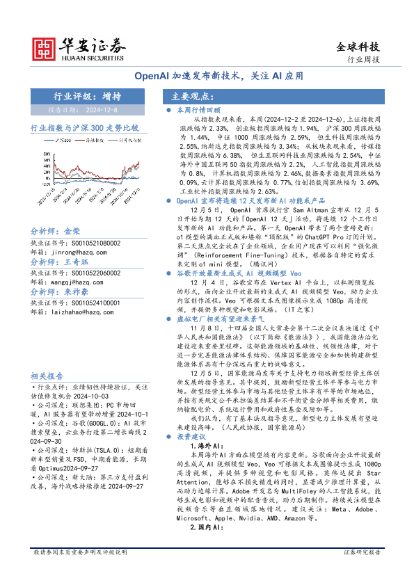 【华安证券】【20241208】全球科技行业周报:OpenAI加速发布新技术,关注AI应用-27页