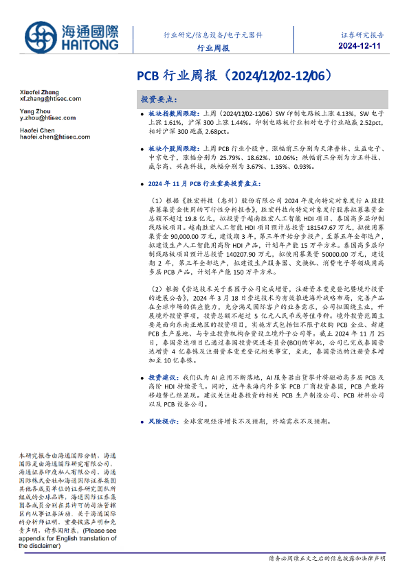 【海通国际】【20241211】PCB行业周报(2024/12/02-12/06)-10页