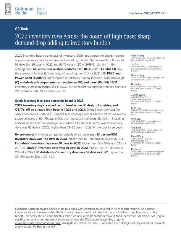 【Goldman Sachs】【20220905】2Q22库存从高位回落;需求锐减增加库存负担-13页