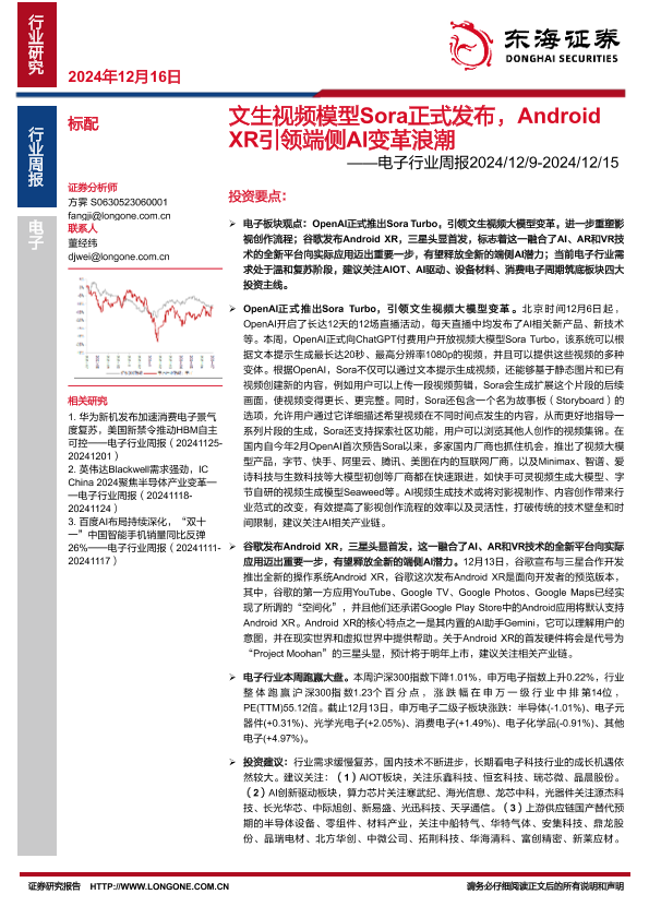 【东海证券】【20241216】文生视频模型Sora正式发布,AndroidXR引领端侧AI变革浪潮-14页