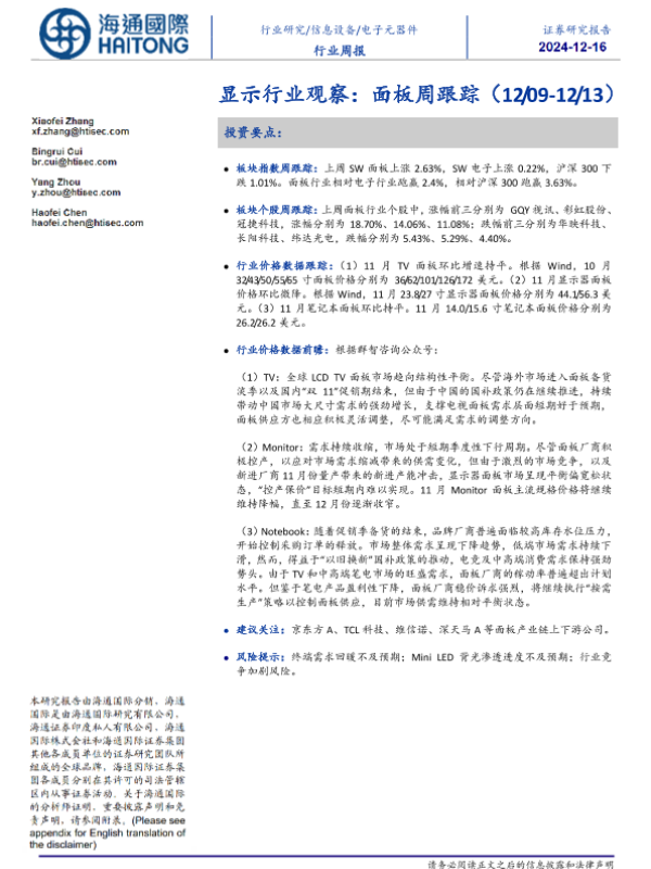 【海通国际】【20241216】显示行业观察:面板周跟踪-11页
