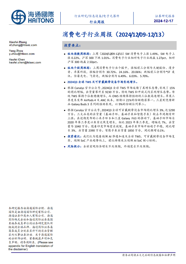 【海通国际】【20241217】20241217-海通国际-消费电子行业周报-10页