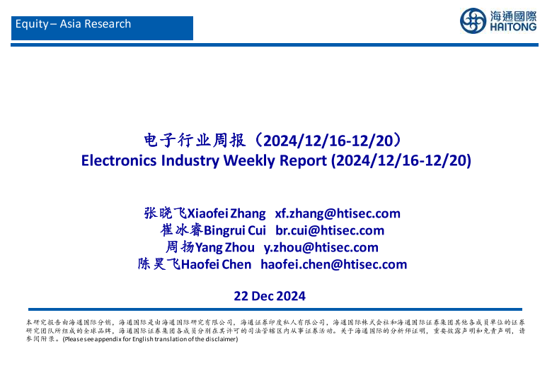 【海通国际】【20241222】电子行业周报(2024/12/16-12/20)-26页