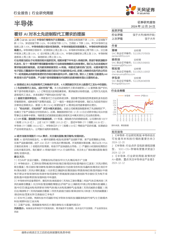 【天风证券】【20241224】20241224-天风证券-半导体行业研究周报:看好AI对本土先进制程代工需求的提振-32页