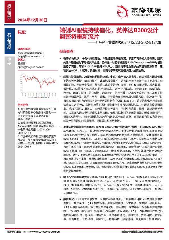【东海证券】【20241230】端侧AI眼镜持续催化,英伟达B300设计调整将重新流片-15页