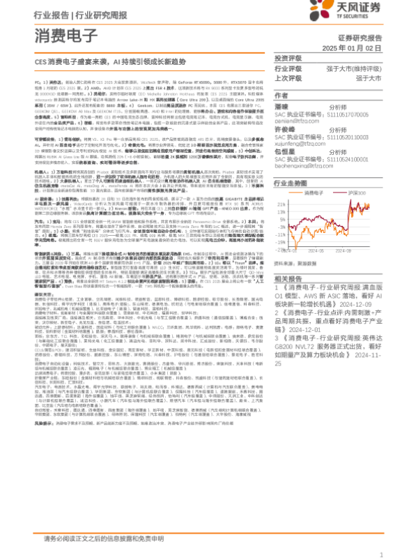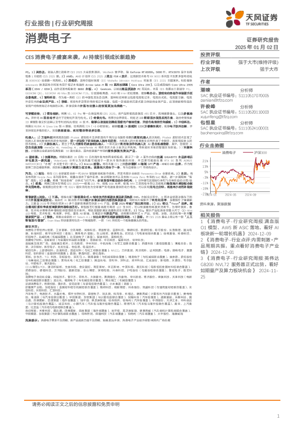 【天风证券】【20250102】消费电子行业研究周报:CES消费电子盛宴来袭,AI持续引领成长新趋势-18页
