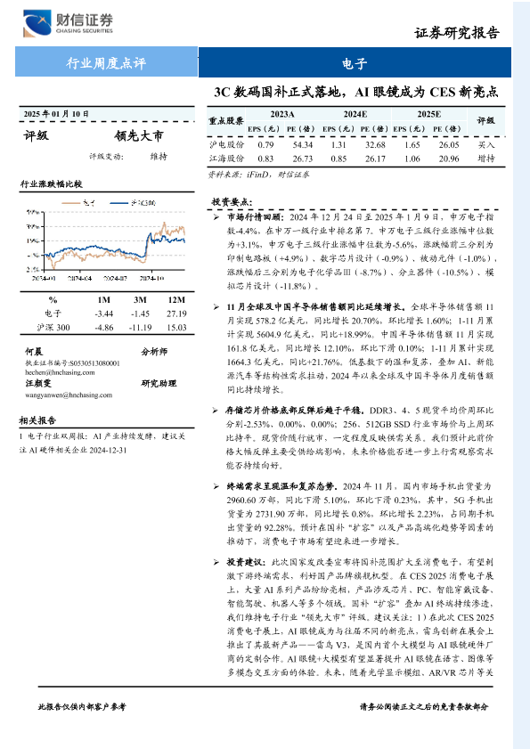 【财信证券】【20250110】电子行业周度点评:3C数码国补正式落地,AI眼镜成为CES新亮点-14页
