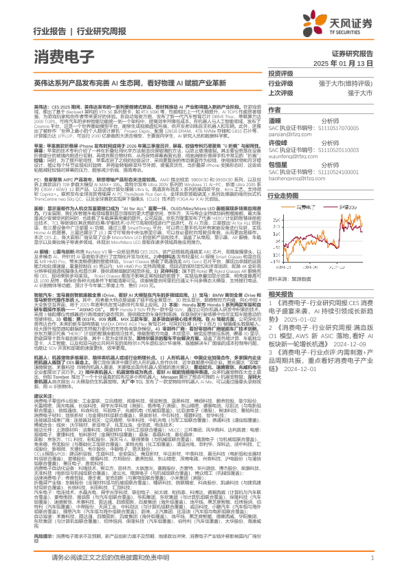 【天风证券】【20250113】消费电子行业研究周报:英伟达系列产品发布完善AI生态网,看好物理AI赋能产业革新-29页