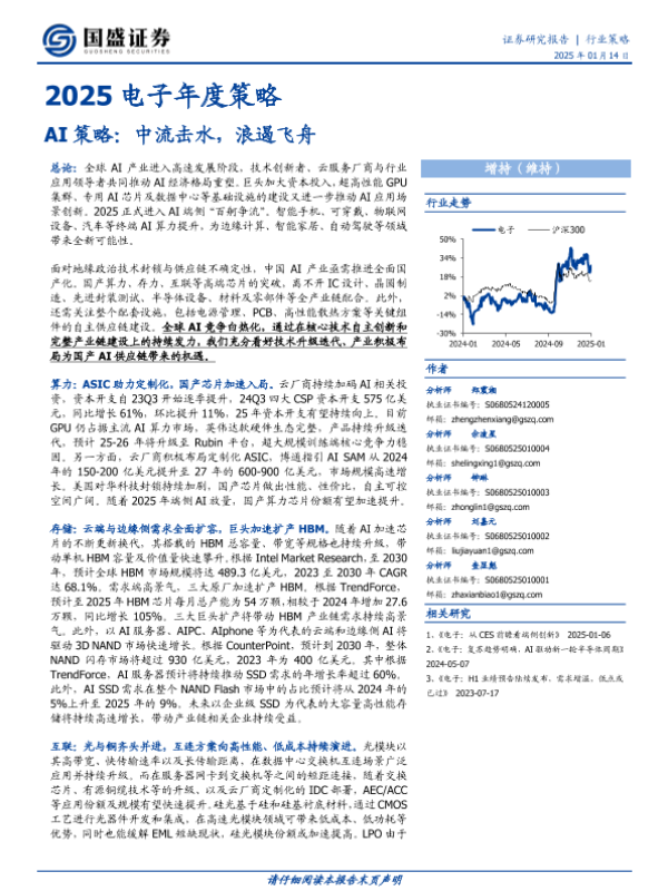 【国盛证券】【20250114】2025电子年度策略:AI策略:中流击水,浪遏飞舟-105页