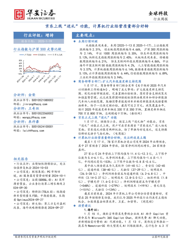 【华安证券】【20250119】全球科技行业周报:京东上线“送礼”功能,计算机行业经营质量部分好转-28页