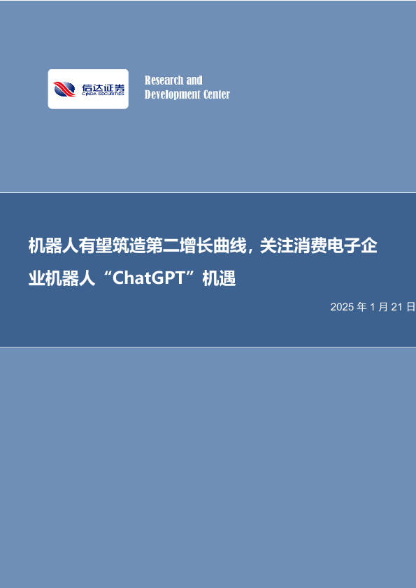 【信达证券】【20250121】机器人有望筑造第二增长曲线,关注消费电子企业机器人“ChatGPT”机遇-15页