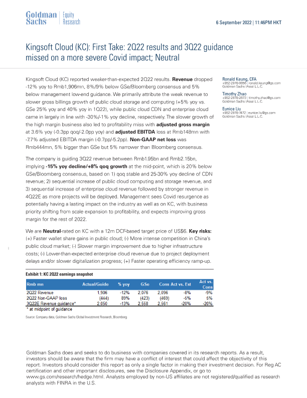 【Goldman Sachs】【20220906】2Q22业绩未达预期,3Q22指引因更严重的新冠疫情冲击而下调;中性评级-8页