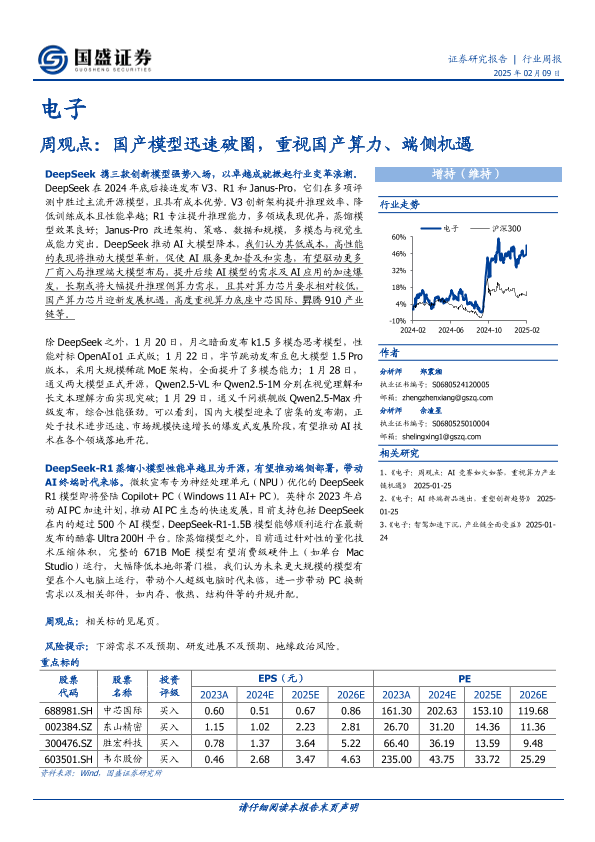【国盛证券】【20250209】电子周观点:国产模型迅速破圈,重视国产算力、端侧机遇-35页