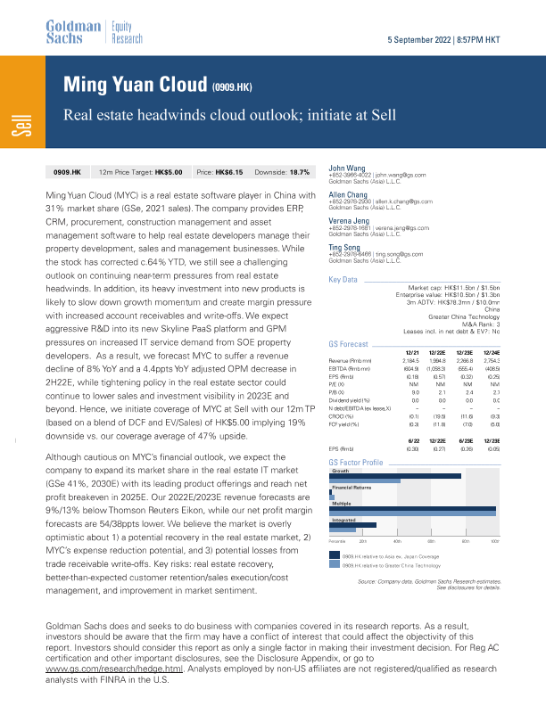 【Goldman Sachs】【20220905】n Cloud (0909.HK)_ Real estate headwinds cloud outlook; initiate at Sell-49页