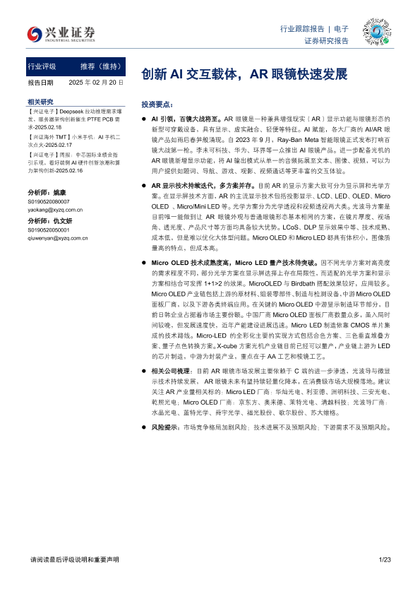 【兴业证券】【20250220】创新AI交互载体,AR眼镜快速发展-23页